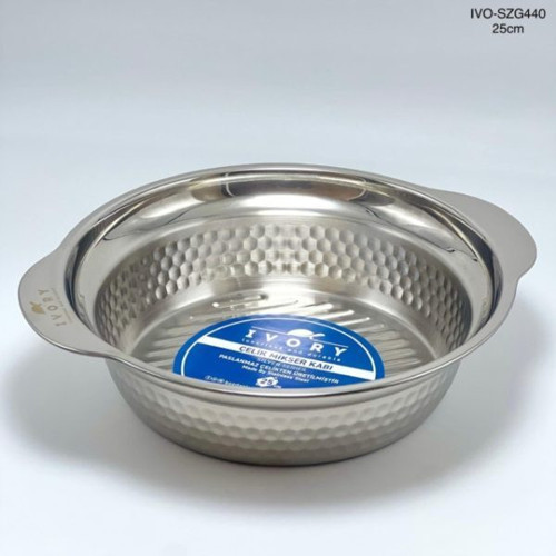 IVORY Çelik Sığ Mikser Kabı 25×7 cm | Dayanıklı ve Çok Amaçlı Karıştırma Kabı