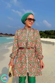 Fantasy Bayan Desenli Fermuarlı Paraşüt Taytlı Tesettür Mayo 3363 - Image 1