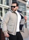 ixir Elyaf Dolgulu Kapüşonlu Erkek Kışlık Mont Krem