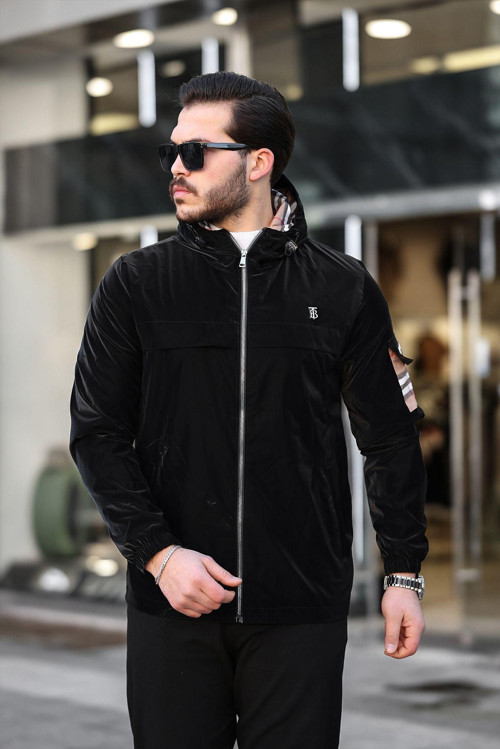 Mevsim geçişlerinde ideal konfor sunan kapüşonlu kol detaylı erkek mont, günlük kullanım için mükemmel bir seçenektir.