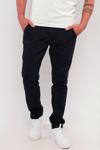 Bu jogger pantolon, dar paça ve katlanabilir paça detaylarıyla modern bir görünüm sunar. İp ile bağlamalı bel tasarımı ve elastan katkısı sayesinde konforlu bir kullanım sağlar.