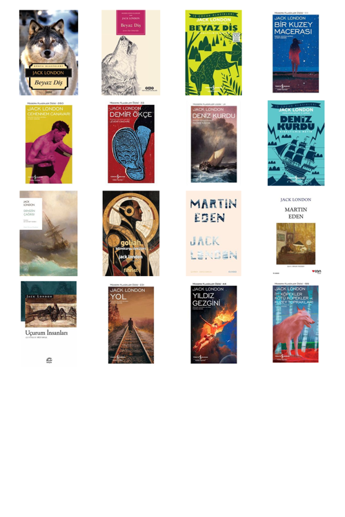 Beyaz Diş - Beyaz Diş - Beyaz Diş (Kısaltılmış Metin) - Bir Kuzey Macerası - Cehennem Canavarı (Karton Kapak) - Demir Ökçe (Karton Kapak) - Deniz Kurdu - Deniz Kurdu (Kısaltılmış Metin) - Denizin Çağrısı - Goliah & Bilimkurgu Öyküleri - Martin Eden - Martin Eden (Beyaz Kapak) - Uçurum İnsanları - Yol - Yıldız Gezgini - İyi Köpekler Kötü Köpekler ve Kuzey Toprakları