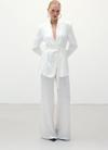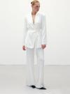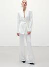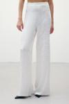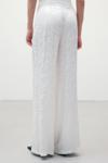 Yüksek bel, yan fermuarlı, geniş paça, jakar saten pantolon.