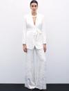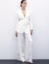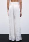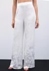 Sateen Jakarlı Bol Paça Pantolon - Ekru