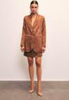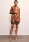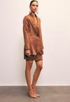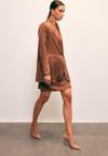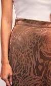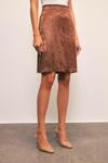 Yüksek bel, arka fermuarlı, jakarlı çan etek.