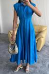 JAKARLI KETEN ELBİSE ÖNDEN YIRTMAÇLI CEPLİ - Saks