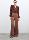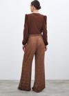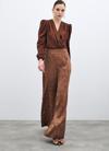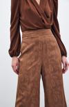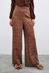Yüksek bel, yan fermuarlı, desenli salaş pantolon.
