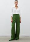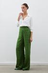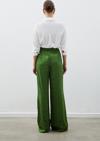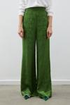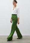 Yüksek bel, yan fermuarlı, desenli salaş pantolon.