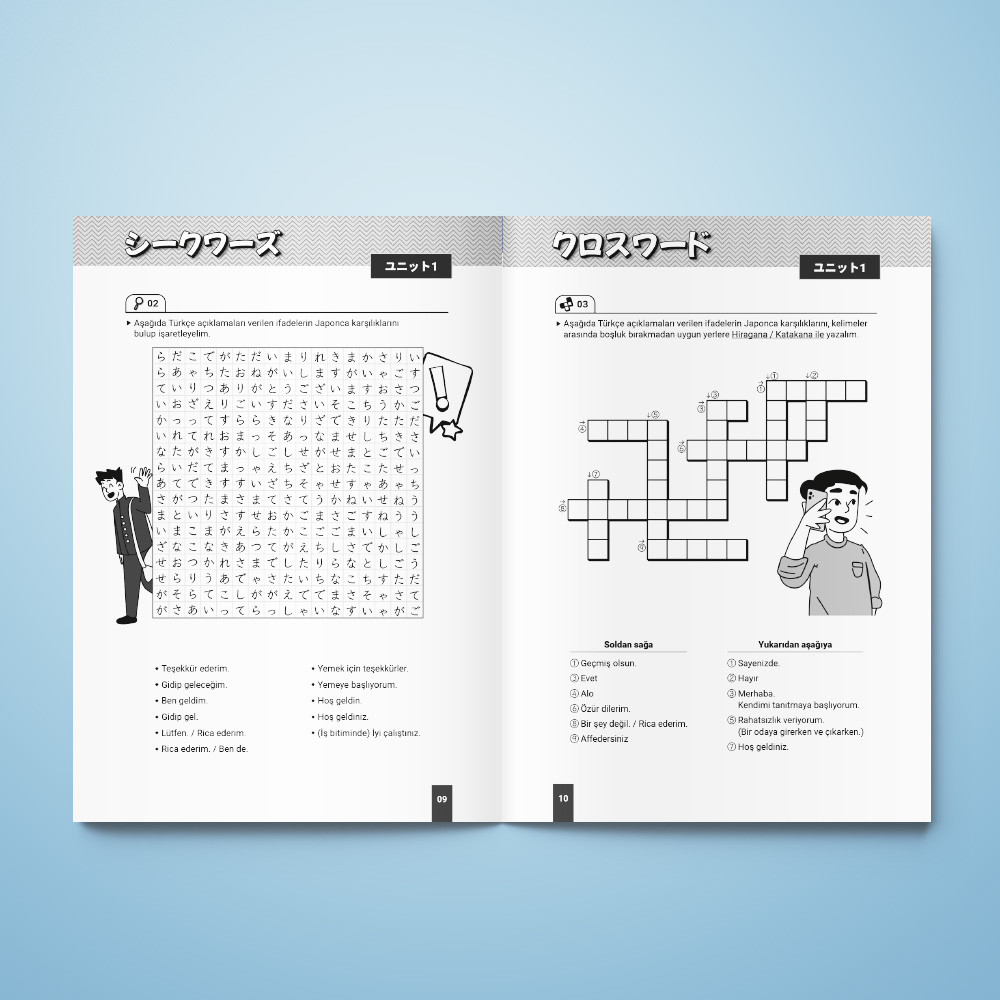 Edusama Japonca N5 Bulmaca Kitabı – Hiragana ve Katakana: Bu kitap, Hiragana ve Katakana karakterleri üzerine odaklanarak, öğrencilerin her iki yazı sistemine hakimiyet kazanmalarına yardımcı olur. Toplamda 63 bulmaca içerir ve bu bulmacalar, öğrencilerin Japonca yazı bilgilerini pekiştirmelerini sağlar.