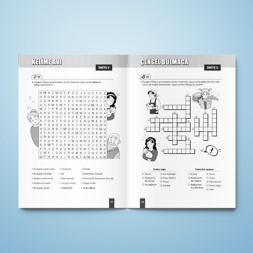 Kitap, öğrencilerin Japonca kelime içerir ve romaji okuma becerilerini geliştirmelerine yardımcı olmak için 63 adet bulmaca sunar. Kitapta, verilen ipuçlarına göre kelimeleri yerleştirerek öğrenmeyi eğlenceli hale getiren Çengel Bulmaca ve Japonca romaji kelimelerini bularak hafızayı güçlendiren Kelime Avı gibi iki farklı bulmaca türü bulunmaktadır. Bulmacalar, Japonca kelime bilgilerini eğlenceli bir şekilde pekiştirirken, kolaydan zora doğru sıralanmış zorluk seviyeleri sayesinde öğrencilerin gelişimine katkıda bulunur. Ayrıca, kitap anlaşılır ve kullanıcı dostu bir tasarıma sahip olup, öğrencilerin rahatlıkla takip edebileceği şekilde düzenlenmiştir.