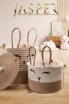 JASPER Bej İkili Jüt İp Tavşan Tasarımlı Çok Amaçlı Çocuk Odası Oyuncak Kıyafet Kirli Sepeti Organiz