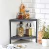Dayanıklı plastik malzemesi sayesinde uzun ömürlü kullanım sunar; Üçgen tasarımı ile modern ve şık bir görünüm sağlar, banyonuzun dekorasyonuna estetik bir dokunuş katar; İki katlı yapısı sayesinde geniş depolama alanı sunar, banyo malzemelerinizi düzenli bir şekilde saklamanızı kolaylaştırır; Siyah rengiyle her türlü banyo dekorasyonuyla uyum sağlar ve zamansız bir şıklık sunar;