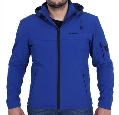 Venom soft shell motosiklet ceketi, ayarlanabilir kapüşonla ve sertifikalı dirsek omuz ve sırt korumalarına sahiptir.