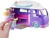 Dış kısmında kamp aksesuarlarını koyabileceğiniz bir raf bulunan, karavan şeklindeki oyun seti açıldığında sevimli bir kamp alanı ortaya çıkar.