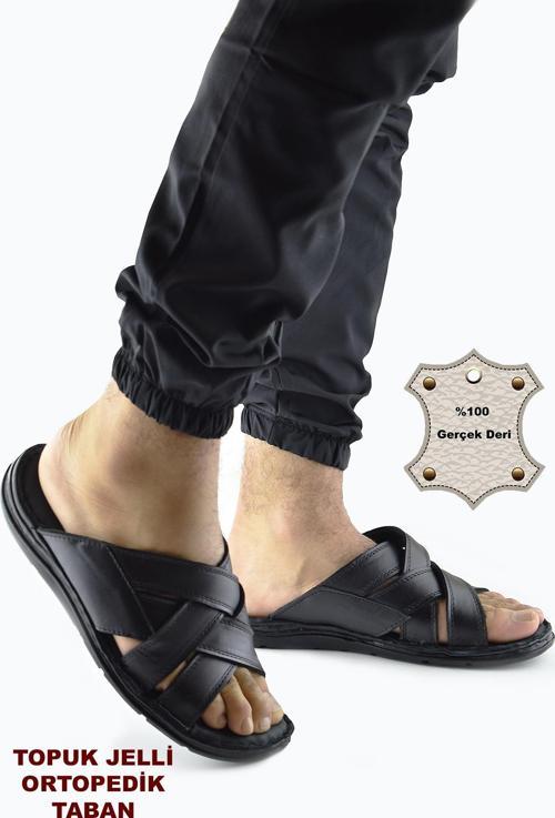 Jel Taban 034 Günlük TAM ORTOPEDİK Hakiki Deri Erkek Terlik PUFF Taban