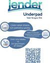 • Jender Yatak Koruyucu Örtü (Underpad) 60 x 90 cm ebadında emici üst tabakası ve sıvıyı geçirmeyen alt tabaka, sızıntılara karşı kullanıcıyı ve yatağı güvenle korur.