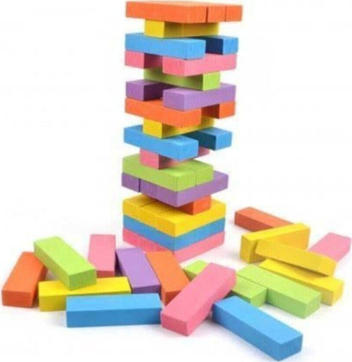 54 parça renkli ahşap bloklarla donatılmış olan bu oyun, çocukların motor becerilerini ve denge yeteneklerini geliştirmelerine yardımcı olur