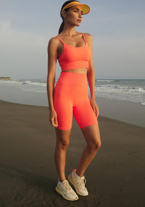 Jerf Gela Yüksek Bel Biker Şort (12cm) Neon Mercan