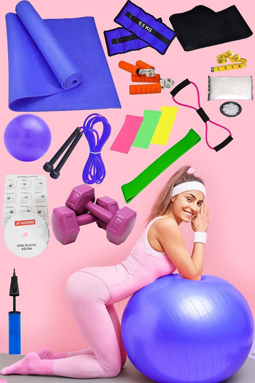 Jet 20 Li Evde Pilates Seti Full Plates Aerobik Minderi Topu Dambıl 3 Lü Jimnastik Lastiği Bandı (Mavi)