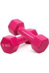 Dayanıklı döküm malzemesi sayesinde uzun ömürlü kullanım sunar; 5 kg ağırlığındaki iki adet dambıl, çeşitli egzersizler için ideal ağırlık sağlar; Vinyl kaplama, dambılların kaymasını önleyerek güvenli bir antrenman deneyimi sunar; Pembe renk seçeneğiyle spor salonunuzda şık ve modern bir görünüm kazandırır;