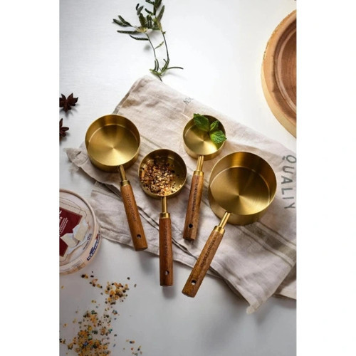 Bu 4'lü ahşap saplı ölçü kaşığı seti, mutfakta ölçü almak için ideal bir çözümdür. Metal kısmı şık altın rengindedir, ahşap sapları ise ergonomik olup rahat bir kullanım sağlar. Farklı boyutlarda 4 ölçü kaşığından oluşan bu set, her türlü yemek tarifinde doğru ölçüleri almanıza yardımcı olur. Estetik tasarımı, mutfakta şıklık yaratır. Her bir kaşık, dayanıklı malzemelerle üretilmiştir ve uzun süreli kullanım için uygundur.