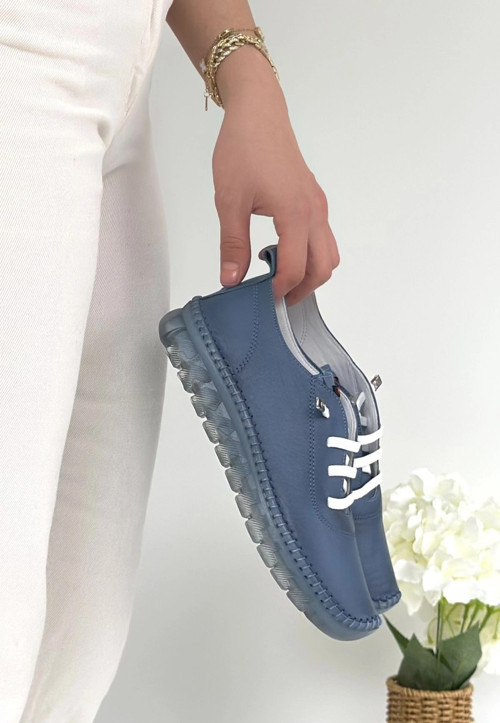 Jiten Mavi Deri Bağcıklı Spor Ayakkabı