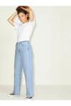 Her yaştan kadının gardırobunun vazgeçilmezi olan bu mavi pantolon, regular kesimi ile rahat ve konforlu bir kullanım sunar.