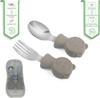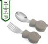 Çocuk Silikon Saplı Paslanmaz Çelik Uçlu Çatal Ve Kaşık (304) - Saklama Kutusu - (Gri)