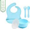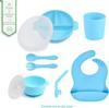 Jojobebek Silikon Beslenme Seti Vakumlu Silikon Mama Tabağı Ve Kasesi - Silikon Çatal Ve Kaşık - Bardak - Mavi