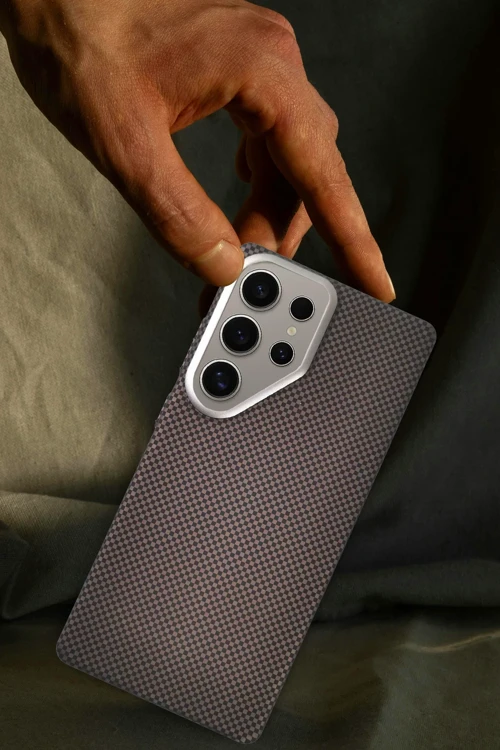 Sağlam, lüks ve hafif bir kılıftır sert plastik ve metal kamera çerçevesiyle tam koruma sağlar. Şık karbon fiber tasarımı modern bir görünüm sağlarken yerleşik MagSafe uyumluluğu da aksesuarların kolay şarj edilmesini ve bağlanmasını sağlar.