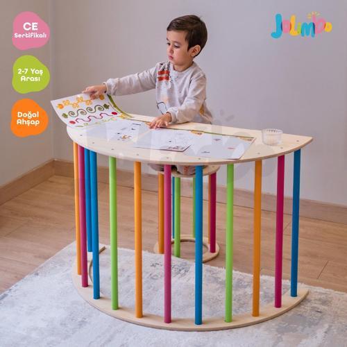 🌈 JOLIMBO MİNİ AKTİVİTE MASA VE MİNDER – RENKLİ