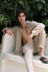 Kısa paça, rahat formda, patında bağlama detaylı liyosel erkek pantolon.