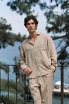 Oversize,patlı,manşetli liyosel erkek gömlek.