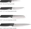 - Dahil Olan Bıçaklar: 3.5” Paring bıçağı; 4.5” Dilimli bıçak; 5.5” Santoku bıçağı; 6.5” Şef bıçağı