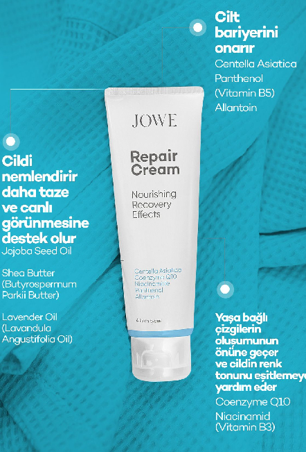 Cildinizin ihtiyacı olan yoğun nemi sağlayan Jowe Recovery Cream, su bazlı formülüyle hızla emilir ve yağlı bir his bırakmaz.