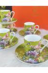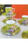 Canlı yeşil renkleriyle göz alıcı bir görünüm sergileyen bu fincan takımı, sofralarınıza modern bir dokunuş katar.