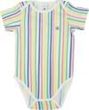 Çizgi baskılı kısa kollu body bebeklerin sanatçı dünyasından stillerine renk katmak üzere tasarlanmıştır.