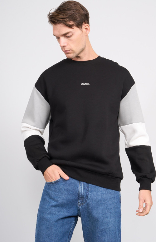 Mareteks 9554 Js Sıyah Erkek 0 Yaka Kol Parcalı Enjeksıyon Baskı 3 Iplık Sweatshırt
