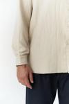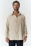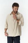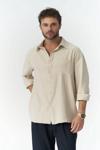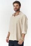 Relaxed gömlek. Düğmeli manşetli, uzun kollu. Dokulu ön cepli ve önü düğmeli.