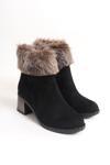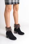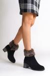 JULIA Fermuarlı Ortopedik Taban Tüylü Topuklu Süet Kadın Bot  SST - Siyah