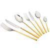 Jumbo Altın 12 Kişilik Çatal Bıçak TakımıBu Jumbo altın çatal bıçak takımı 18/10 paslanmaz çelikten üretiliyor. Şık 12 kişilik yemek takımlarının en güzel eşlikçisi olmaya aday bu set içinde ihtiyacınız olan parçalar mevcut. Her bir parçadan on ikişer adet olmak üzere yemek kaşığı, yemek bıçağı ve yemek çatalının yanı sıra tatlı bıçağı, tatlı çatalı ve tatlı kaşığı da kutu içinde geliyor. Ayrıca her parçanın ebadı da ideal tasarlanmış. Siz de ister çeyiz için ister bireysel kullanım için tercih edeceğiniz bu altın çatal kaşık bıçak takımını satın almak için sepetinize ekleyin!