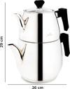 Malzeme: 304 Paslanmaz Çelik Kulp Materyali: Bakalit Boyut: 26x29 cm Renk: Siyah Set İçeriği 1 Adet Suluk 1 Adet Demlik 1 Adet Kapak Ürün Ölçüsü Demlik: 1,25 lt Su Kapasitesi: 2,50 lt Ürün Özellikleri İndüksiyonlu ocak dahil tüm ocaklarda kullanıma uygundur. ; Bulaşık makinesinde yıkamaya uygundur. ; 2 Yıl garanti süresi ; Yerli üretimdir ;