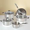 Jumbo Stella çelik 8 parça tencere seti mutfakların aranan parçaları arasında. Üst düzey kalitesi ile uzun yıllar size eşlik edebiliyor. Paslanmaz çelikten üretilen bu tencere seti, cam kapaklara sahip olup çelik ve canım eşsiz beraberliğini size sunuyor. 8 parçadan oluşan set çok yönlü kullanıma sahip olup çorbadan ana yemeğe hatta sos yapabilmenize kadar geniş bir set içeriğine sahip. Mutfakta size en iyi deneyimi sunmayı hedefleyen bu tencere seti her yemeği hazırlayabilmenize de imkân tanıyor. Modern tasarımı sayesinde her mutfağa ve zevke de hitap edebilen Jumbo Stella tencere seti, tutma sağları üzerinde bulunan ufak detayları sayesinde ısınan saplardan dolayı elinizin yanmasının önüne geçiyor. Aynı zamanda kullanım kolaylığı da sağlıyor. Her açıdan ergonomik olan bu ile siz de sevdiklerinize lezzetli yemekler hazırlayabilir, mutfaktaki yardımcınızı kendiniz seçebilirsiniz. İdeal Pişirme Deneyimi İçin Jumbo Stella Tencere Seti Profesyonel pişirme deneyimi sunan Stella Jumbo tencere seti, sevdiklerinize harika yemekler hazırlayabilmenizi sağlıyor. Farklı boyutlarda üç çelik tencere, bir tava ve bir sütlüğe sahip olan bu set ihtiyaçlarınızı rahatlıkla karşılayabiliyor. Çelik yapısı sayesinde yapışmaz bir yüzeye sahip olan Stella tencere seti, yemek pişirme deneyiminizi pratik ve keyifli bir hale dönüştürüyor. Yiyeceklerin pişme süresini kontrol edebilmeniz için kapağı camdan üretilen bu set içeriği size büyük bir kolaylık sağlıyor. Fonksiyonel aynı zamanda da estetik görünümü ile mutfağınıza şık bir detay katıyor. Siz de bu modern tencere takımını tercih ederek mutfağınızdaki performansınızı arttırabilir, dilediğiniz yemeği yapabilirsiniz. Renk: Çelik Malzeme: Paslanmaz Çelik - Cam Parça Sayısı: 8 Parça Set İçeriği 24 cm Derin Tencere - 4 litre 20 cm Derin Tencere - 2 litre 24 cm Basık Tencere - 1,1 litre 24 cm Tava - 3 litre 16 cm Sütlük- 1,5 litre Ürün Özellikleri İndüksiyonlu ocaklarda kullanıma uygundur. Taban kalınlığı 1,5 cm'dir.