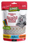 Jungle Mix Kedi Krema Ödülü, her biri ayrı lezzette olan tavuk, ton balığı & somon ve ton balığı & karides içerikli üç farklı krema ödülünü bir araya getiriyor. Seçici kediler için mükemmel bir alternatif sunar. Yüksek et oranı, vitaminler ve taurin desteğiyle hem damakları şenlendirir hem de sağlık katkısı sağlar. Kedinizin ödül anları artık çok daha çeşitli ve keyifli!