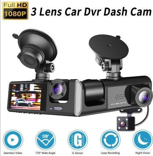 Junglee 3 Kameralı Araç İçi Kamera Kayıt Cihazı 3 Lens Cardvr Dash Cam Ön İç Ve Geri Görüş Kamerası