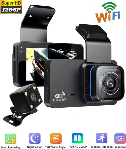 Junglee Wifi Li Araç İçi Kamera 3 İnç Ekranlı Ön Ve Geri Görüş Kameralı Mikrofonlu 1296P Super Hd