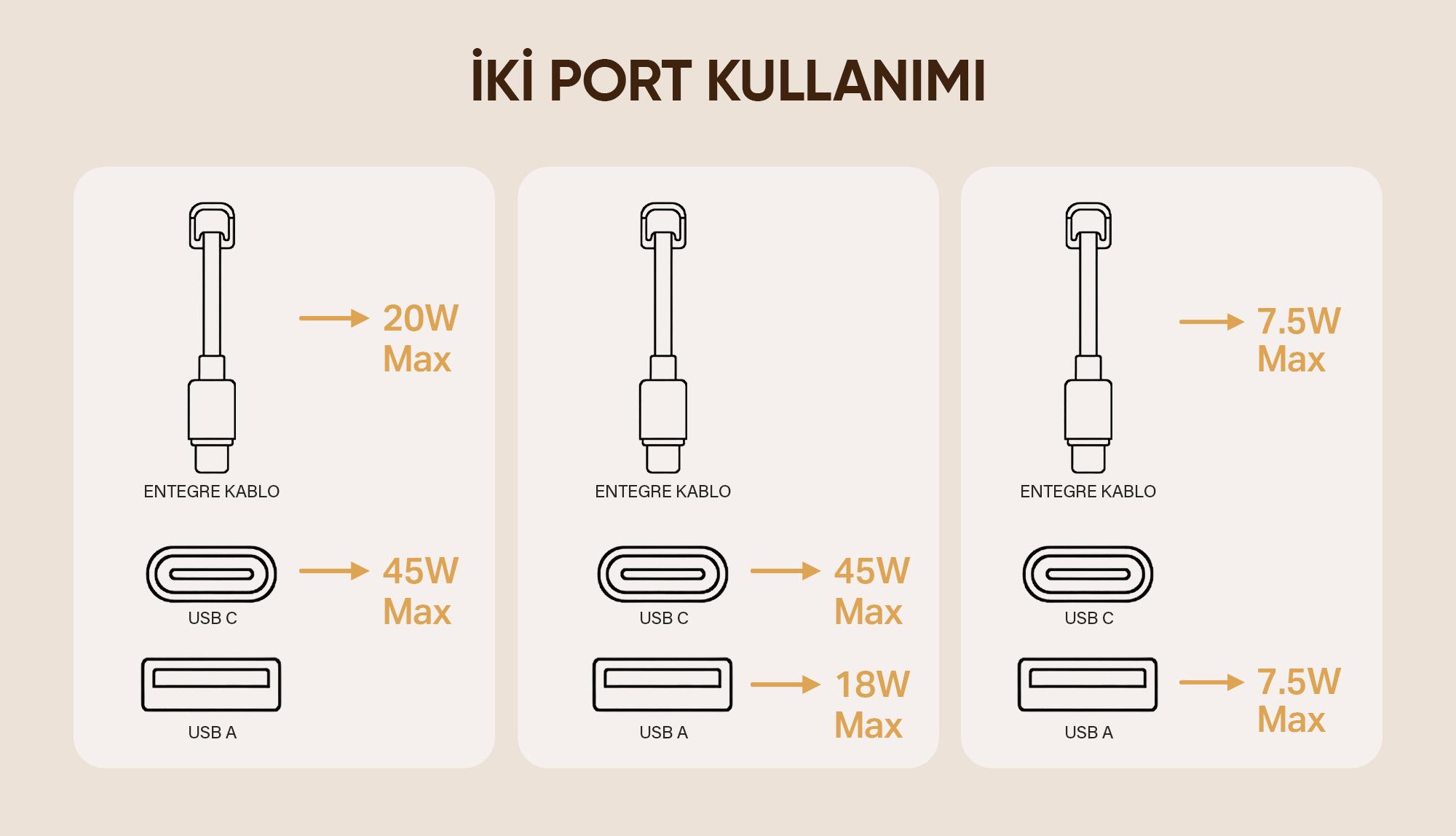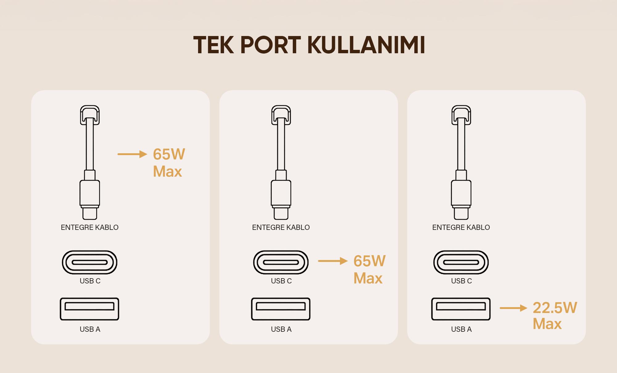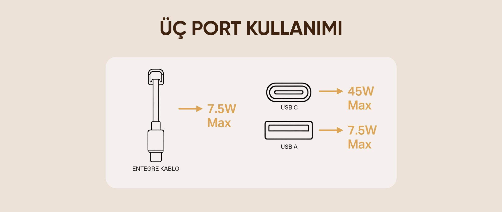 • Çıkış Portları: Type-C, Dahili Type-C Kablosu, USB-A