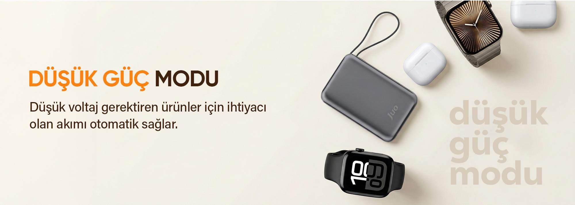 Akıllı düşük güç modu, akıllı saat ve kulaklıklar gibi düşük güç tüketimli cihazları güvenle şarj etmenize olanak tanır. Bu mod, düşük güç ihtiyacını olan cihazlar için tasarlanmış olup, cihazınızın güvenliğini koruyarak şarj eder.