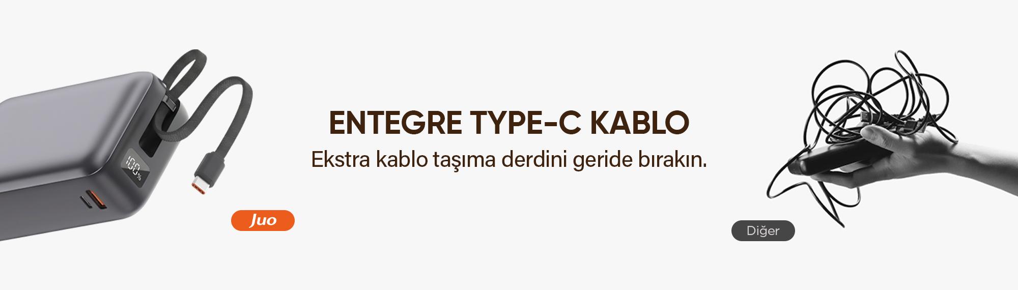 Juo Powerbank, entegre Type-C kablo tasarımıyla ekstra kablo ihtiyacını ortadan kaldırır. Kablo saklama ve kaybetme problemine son veren bu tasarım, cihazınızı her an yanınızda olacak şekilde tasarlanmıştır. Entegre kablo, 65W hızlı şarj desteğiyle birlikte cihazınızı hızlı bir şekilde şarj etmenizi sağlar.