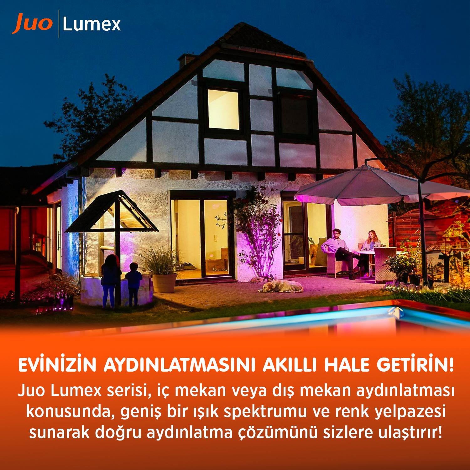 Juo Lumex Akıllı Ampul 11W RGB Wifi & Bluetooth, Juo JSB-11, eşsiz renk paletiyle size tam 16 milyon renk seçeneği sunarak evinizi benzersiz bir atmosfere dönüştürme imkanı sağlar. Her anın ruhuna uygun bir aydınlatma seçeneğiyle ortamınızı özelleştirin. Sadece bir dokunuşla, yaşam alanınızı renklendirin ve enerjinizi istediğiniz gibi ifade edin. Juo JSB-11’in karartma özelliği (Dim Özelliği) sayesinde, aydınlatmanızı kişisel tercihlerinize göre ayarlayabilirsiniz. Işığın yoğunluğunu kolayca düzenleyerek odanızdaki atmosferi anında değiştirin. Maksimum parlaklıktan sakin bir ambiyansa geçiş yapmak artık çok daha kolay. Juo JSB-11, ışık sıcaklığını 2700K ila 6500K arasında ayarlayabilme özelliği sunar. Bu geniş aralık, ortamınızın genel atmosferini anında değiştirmenizi sağlar. Sıcak ve davetkâr bir ışıktan, daha soğuk ve odaklanmış bir tonlu ışığa kadar istediğiniz her şeyi elde edin. Juo JSB-11, Google Home, Alexa ve IFTT ile entegre edilebilen sesle kontrol özelliğiyle yaşamınızı kolaylaştırır. Sadece sesinizle ampulu açabilir, kapatabilir ve istediğiniz renge ayarlayabilirsiniz. Bu, eller serbest kullanım ve maksimum konfor anlamına gelir. Juo JSB-11’i her an her yerden kontrol etme özgürlüğü sunar. Uzaktan erişim ile ışıklarınızı istediğiniz gibi yönetin. Zaman ayarları yapın, renkleri değiştirin ve yaşam alanınızı tek bir dokunuşla özelleştirin. Juo JSB-11, hızlı ve güvenilir Wi-Fi (802.11b/g/n) ile kablosuz iletişim kurarak sürekli bağlantıda kalmanızı sağlar. Bu sayede kesintisiz bir kullanım deneyimi yaşarken ampulünüzle sorunsuz bir şekilde etkileşime geçebilirsiniz. Juo JSB-11 ile evinizdeki tüm ışıkları kolayca yönetin. Tek bir dokunuşla grupları kontrol etmek, yaşam alanınızın her köşesini tam anlamıyla özelleştirmenize olanak tanır. Juo JSB-11 ile ışıklarınızı otomatik olarak zamanlayabilirsiniz. Günlük rutinlerinize uygun olarak ampulünüzü belirli saatlerde açabilir veya kapatabilirsiniz. Bu özellik, enerji tasarrufu sağlamanın yanı sıra yaşamınızı daha da kolaylaştırır. Uygulama aracılığıyla aktive edilen müzik modu, ses ve ritme duyarlı renk değişimleriyle eğlenceli bir atmosfer yaratmanıza olanak tanır. Partilerinizde veya sadece dinlenirken kullanıldığında, müzik modu yaşam alanınıza özel bir dokunuş katar. Non-Flicker özelliği, ışık yoğunluğunun anlık değişimini düzenleyerek gözlerinizi yormaz. Bu özellik, uzun süreli kullanımda bile konforlu bir aydınlatma sağlar. Göz sağlığınıza öncelik veren bu özellikle, Juo JSB-11 ile her anın tadını çıkarabilirsiniz.